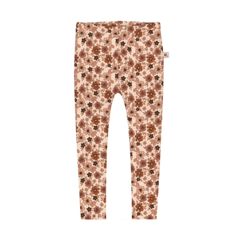 Legging - Bruine & beige bloemetjesPrachtige legging met bloemen, met elastiek in de taille en aansluitende pijpen.